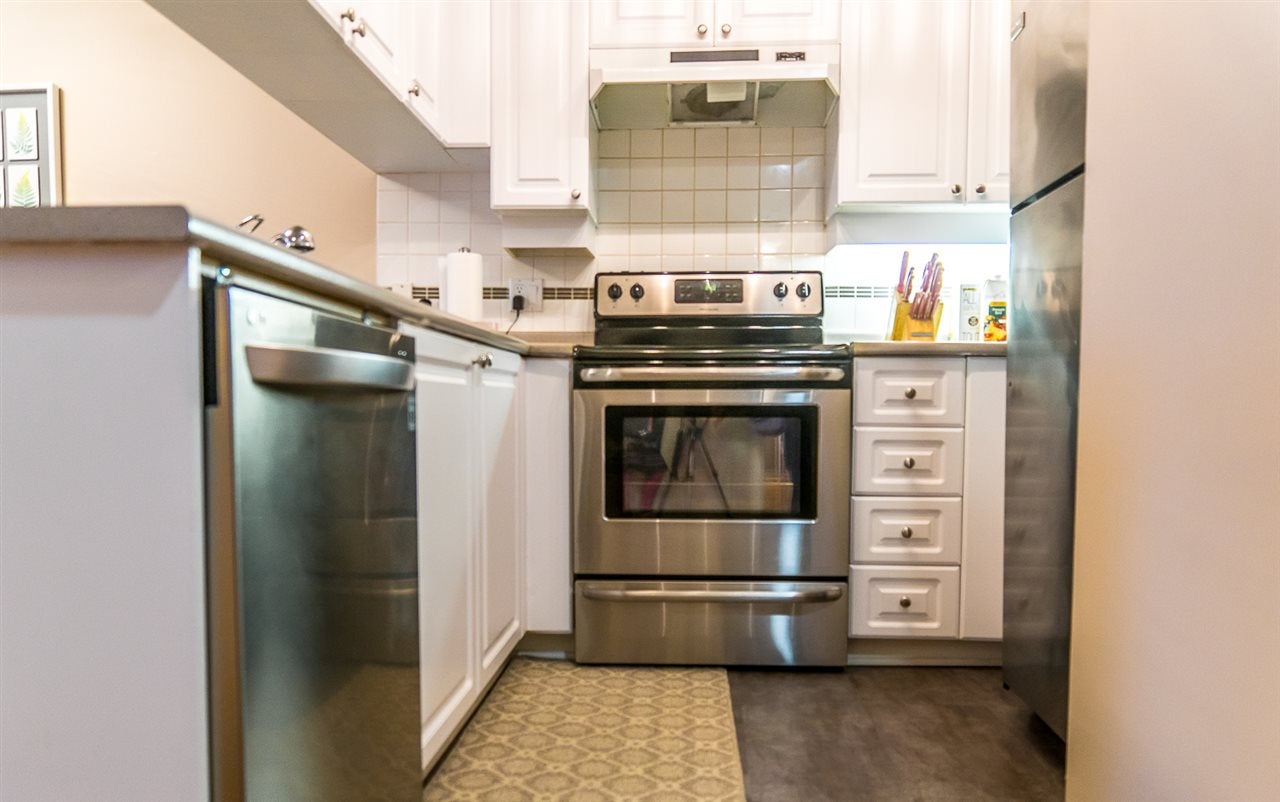 In the heart of New West, a cozy 2 bedroom, 1 bathroom, tastefully renovated condo awaits the next fortunate owner. This SOUTH-FACING unit is close to everything including Skytrain Station, schools and all local amenities. Some of the updates include new flooring, renovated kitchen and bathroom and stylish light fixtures. Other features include insuite laundry, gas fireplace, 1 storage locker, 1 secured parking stall and pets are allowed. Call today!