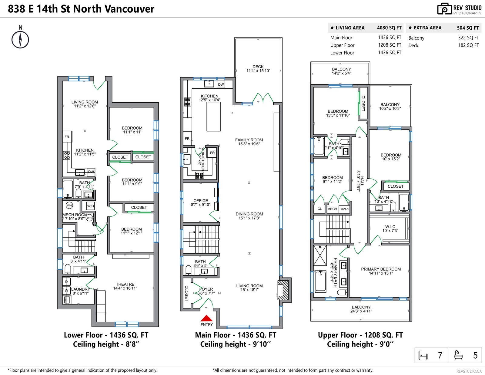 Exceptional new luxury home by Apolla Construction in the heart of Central Lonsdale. Offering over 4,000 sq ft of expertly crafted living space with 7 spacious bedrooms, 4 full bathrooms, 3 elegant powder rooms & a private home office. Includes a 3-bedroom legal suite with separate entrance — ideal for extended family or rental income. Premium features throughout: Miele appliances, custom millwork, radiant in-floor heating, A/C, full wok kitchen, soaring ceilings, oversized windows & designer lighting. EV-ready detached double garage with laneway access. Professionally landscaped yard & spacious covered patios perfect for year-round entertaining. Unbeatable walkability to schools, parks, shops, & transit. A true blend of comfort, style & functionality in the hear of North Vancouver.